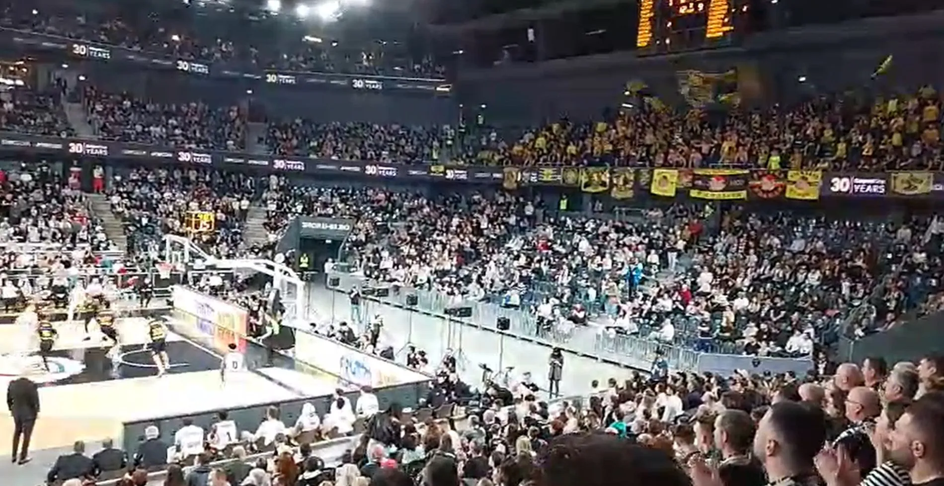BTarena trăiește în aceste momente una dintre cele mai intense seri de baschet european din ultimii ani. Aproape 9.000 de spectatori sunt în tribune, iar atomosfera creată este de senzație.