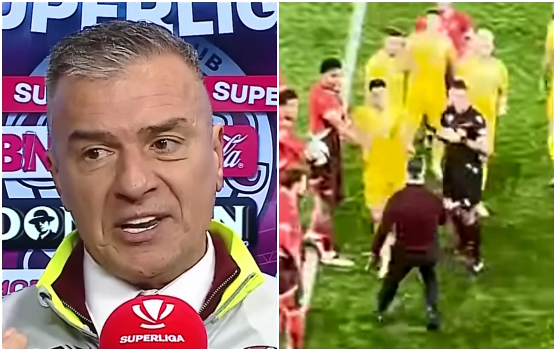 „În minutul 85 a vrut să intre, îl ținea toată banca lui U Cluj, nu e normal! Suntem în România, antrenor străin să-mi bată mie jucător în România, țara mea? N-am ce vorbi despre fotbal. Erau favoriți, au avut o zi în plus de odihnă, toate condițiile, o victorie uriașă. La revedere!. Sunt încă marcat de trist.