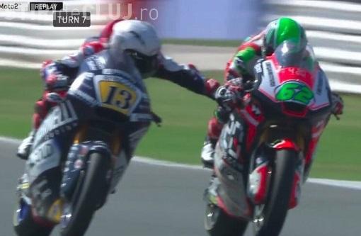 Pilotul italian, Romano Fenati, a fost dat afară de echipa sa după ce a tras frâna de mână a rivalului Stefano Manzi în turul al şaptelea al cursei de la clasa Moto2.