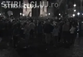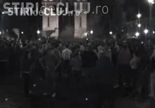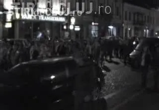 Cateva sute de clujeni bucurosi s-au adunat aseara dupa meci in centrul orasului pentru a sarbatori castigarea campionatului.