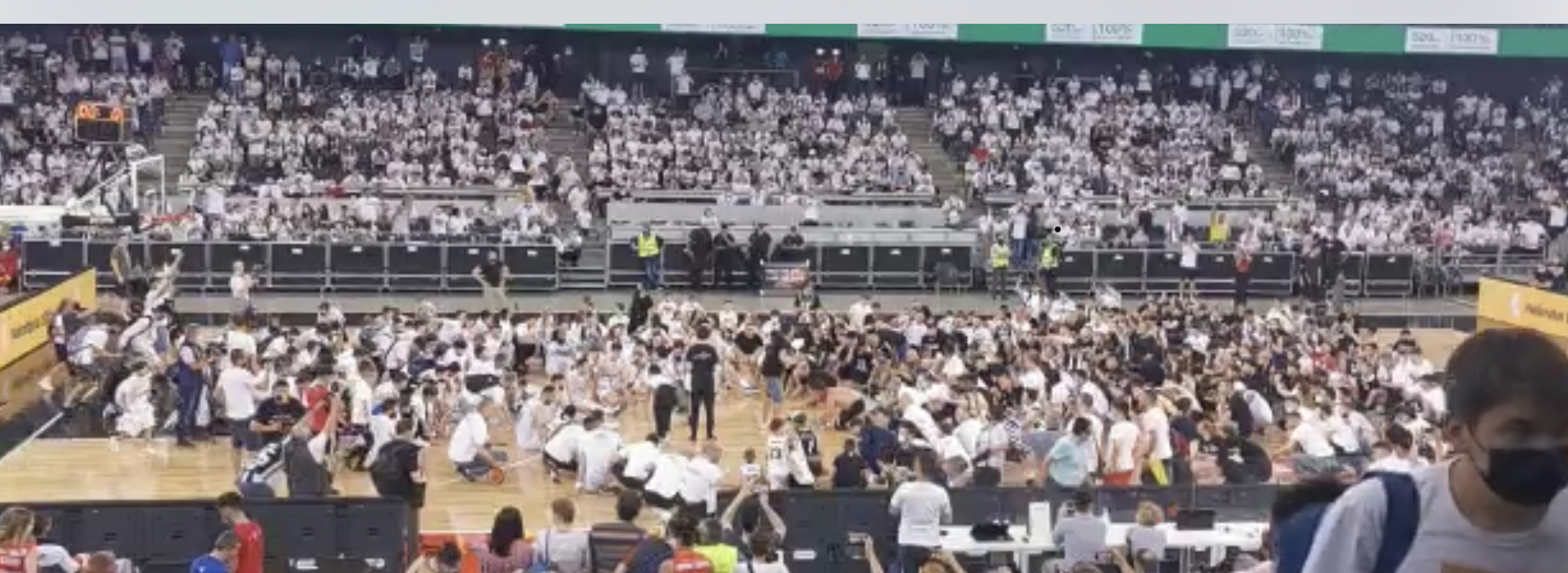 Suporterii au invadat terenul la finalul meciului decisiv de duminica seara. Toată lumea a stat pe parchet in timp ce sala a aplaudat secunde in șir. Suporterii și jucătorii au erupt la un moment dat in uralele sălii.