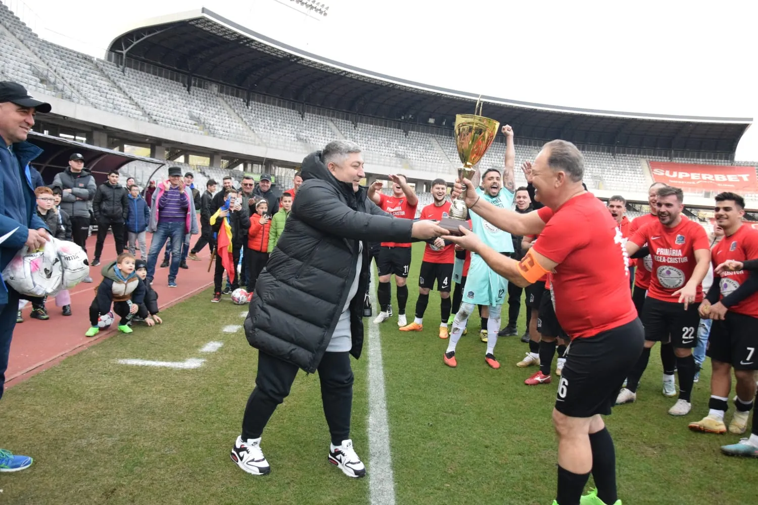 La partidă a asistat și președintele Consiliului Județean Cluj, Alin Tișe, care a și înmânat trofeul echipei câștigătoare.
