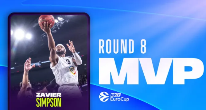 Titlul de MPV al etapei a 8-a din BKT EuroCup a fost câștigat de către jucătorul U-BT Cluj-Napoca, Zavier Simpson. Este prima dată în acest sezon când un jucător de la U BT Cluj obține această distincţie.
