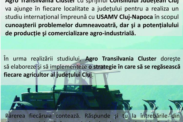 Un nou priecte pentru integrarea comunităților locale clujene în strategia regională agricolă pentru perioada 2014-2020 va fi derulat în luna septembrie de către AgroTransilvania Cluster, cu sprijinul Consiliului Judeţean Cluj şi al Universităţ