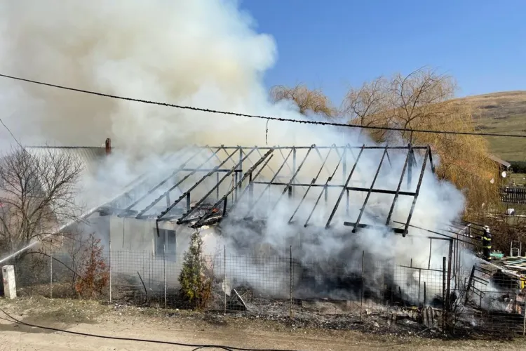 O casă din lemn a ars în Sânnicoara sâmbătă, în jurul orei 13.00.