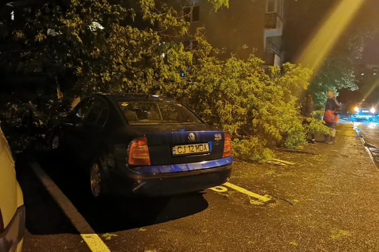 Furtuna de duminică seara a rupt mulți copaci în cartierul Gheorgheni, în zona străzii Unirii și Aleea Bizușa. Mai multe mașini au fost avariate de crengile rupte.