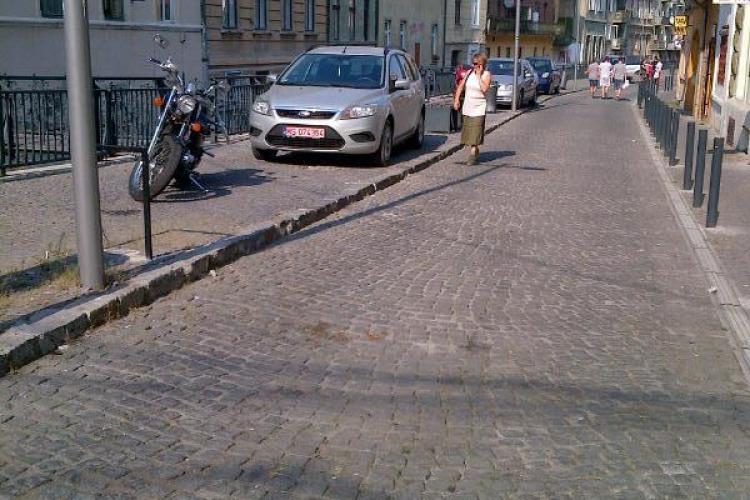 Pietonala de pe strada Andrei Șaguna, din centrul Clujului, s-a transformat într-o parcare.