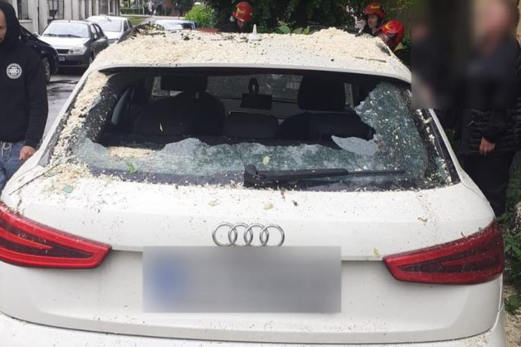O porțiune dintr-un copac s-a prăbușit peste mașina unui clujean, marți dimineață.