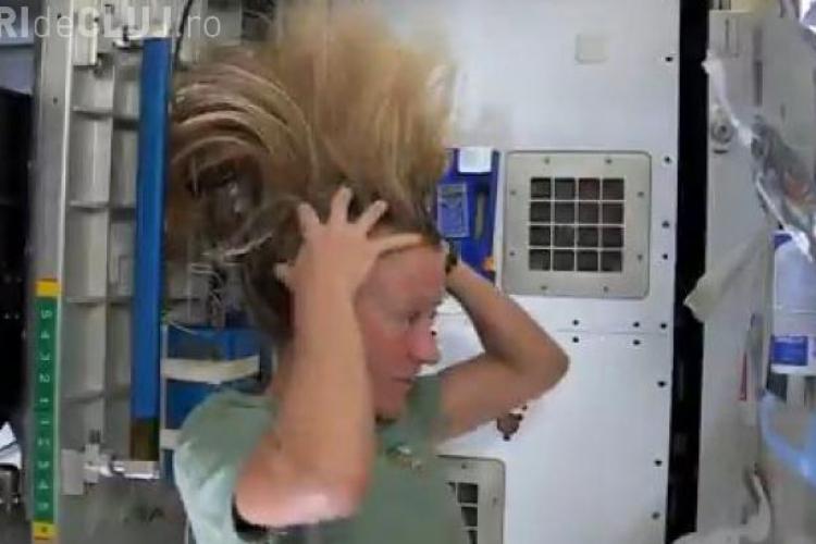 O femeie astronaut a demonstrat cum se spală pe cap astronauţii de pe Staţia Spaţială Internaţională.