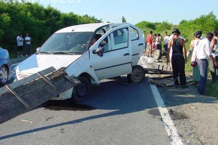 Un șofer care circula de la Florești spre Huedin a lovit o căruță, care trasporta miei.