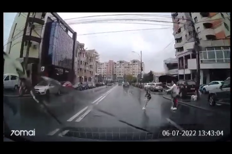 Un incident periculos petrecut recent pe o stradă din Cluj-Napoca a fost surprins de camera de bord a unui șofer