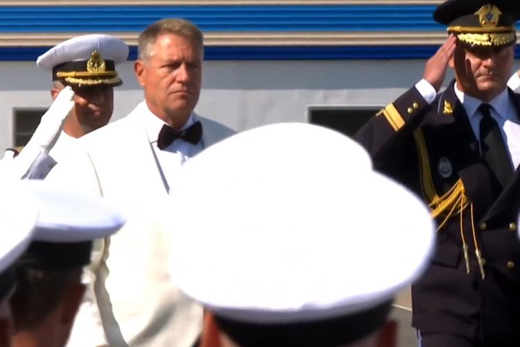 Klaus Iohannis a apărut îmbrăcat la patru ace, duminică, 15 august, la Ziua Marinei Române, de la Constanța. Președintele a fost rapid asemănat cu celebrul spion James Bond 007.