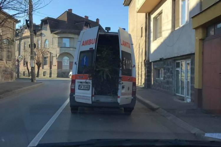 O ambulanță din Satu Mare a fost filmată în Satu Mare în timp ce transporta brazi de crăciun.
