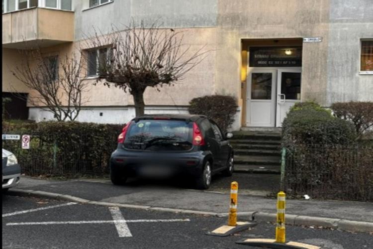 Parcare de LUX în Cluj! Un șofer și-a lăsat „bolidul” la intrare în scara blocului: „E nevoie de lift să urce mașina în casă”