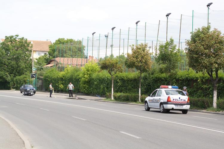 Conducătorul unui scuter s-a răsturnat, în urma unui accident de circulație produs sâmbătă, 23 iunie, în jurul orei 15.00, pe Bulevardul 1 Decembrie 1918.