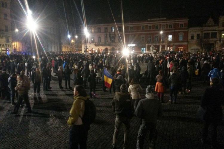 Clujenii au ieșit pentru a 15-a zis la rând în stradă pentru a protesta împotriva Guvernului Grindeanu.