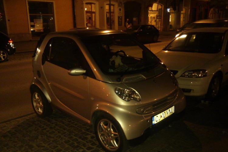 Proprietarul unui Smart demonstreaza in Cluj-Napoca, un oras aglomerat in special in zona centrala, cum poate fi rezolvata problema parcarilor.