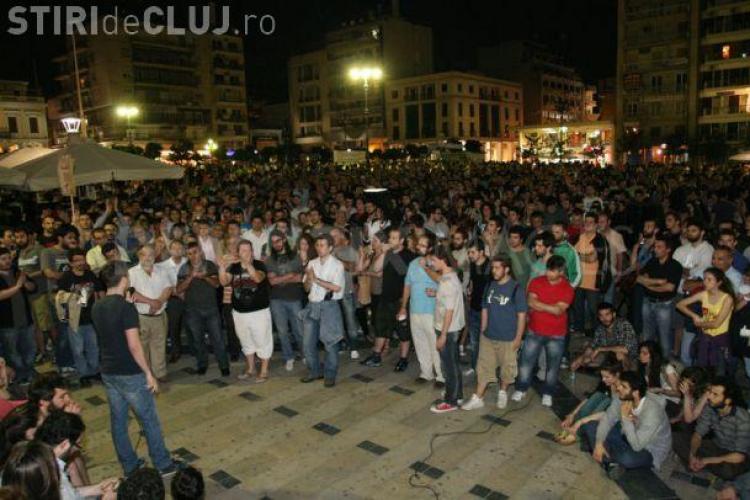 Peste 100 de tineri au participat de la ora 18.00 la miscarea "Democratia Reala Acum", un protest care vizeaza modul in care inteleg politicienii sa aplice democratie. Tinerii au adus cu ei pancarte pe care au scris mesaje de protest.
