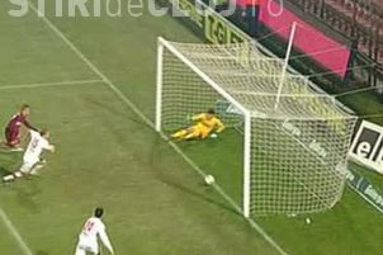 Ricardo Cadu a inscris in minutul 36 din penalty, in urma unui fault comis de Scarlatache. Capitalul CFR Cluj a marcat cu siguranta si tribunele au explodat.