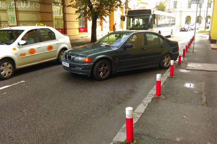 Șoferul din imagine a reușit o parcare de profesionist, dar nu scăpat neamendat.