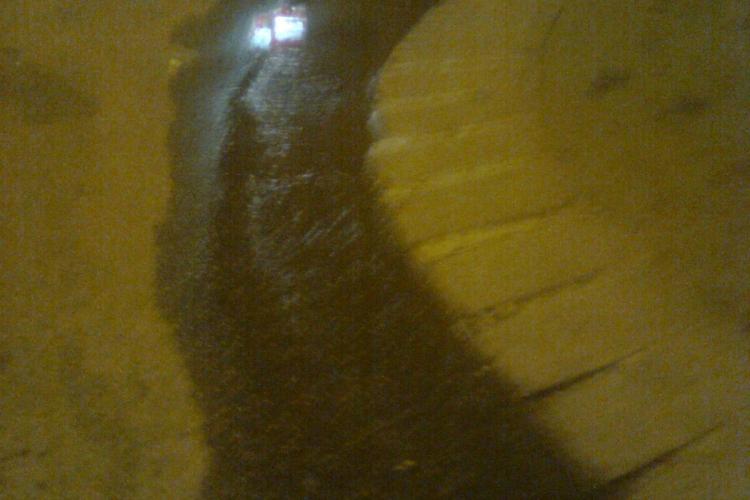 O ţeavă de apă din căminul 17 din campului studenţesc Hasdeu s-a spart de 2 zile, motiv pentru care pe strada Piezişă s-a format un mic râu.