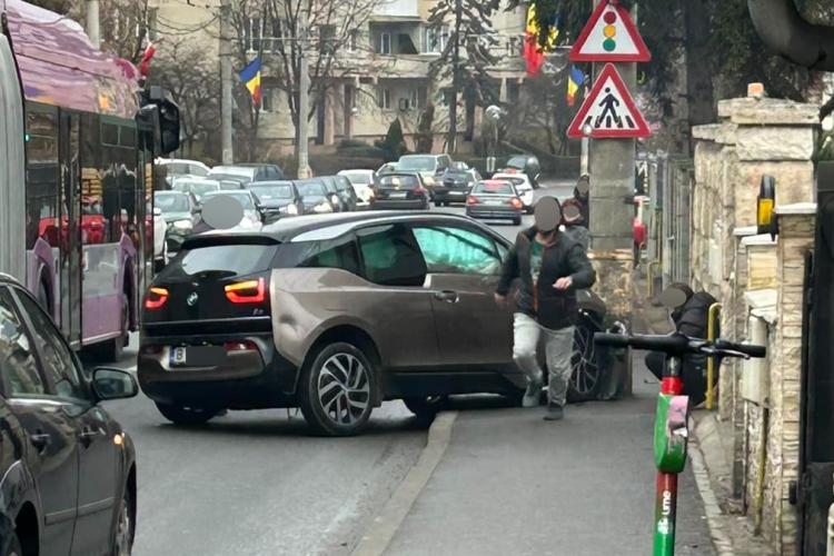 Trafic dat peste cap și trotuare complet blocate în apropierea unei grădinițe din Cluj-Napoca. Șoferii opresc zilnic pe avarii pe un trotuar îngust, fix în orele de vârf, iar părinții cu cărucioare ajung să circule pe carosabil