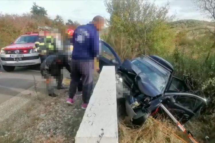 Accident rutier grav în Bistriţa-Năsăud, după ce o mașină a intrat într-un cap de pod. Trei bărbaţi au ajuns la spital.