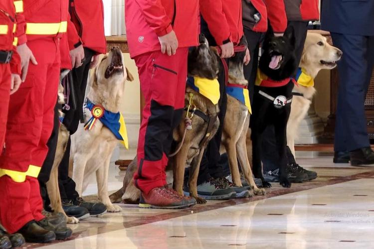 Doi câini de salvare și stăpânii lor au fost premiați de președintele Klaus Iohannis, pentru misiunea din Turcia.