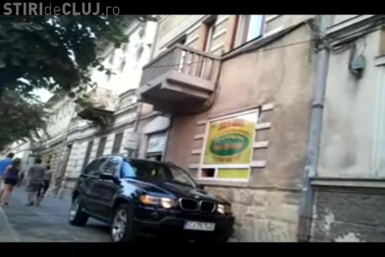 Șoferul unui BMW X5 nu s-a mai obosit să își parcheze mașina și să coboare pentru a face o tranzacție la o casă de amanet, ci s-a dus cu ea până la geamul firmei.