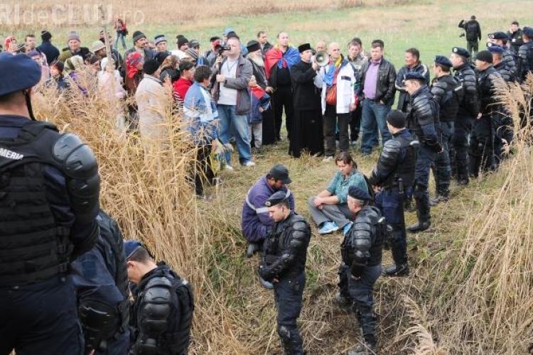 Circa 30 de persoane au protestat, marţi, în faţa Prefecturii Cluj împotriva proiectului de exploatare a gazelor de şist din Pungeşti.