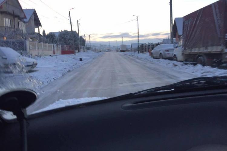 Clujenii care locuiesc în comuna Chinteni reclamă faptul că șoseaua din Deuș era ca un patinoar, marți dimineața.