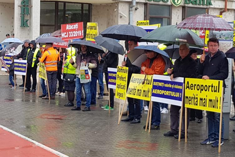 Sindicaliștii de la Aeroportul Cluj protestează în fața Prefecturii Cluj - FOTO
