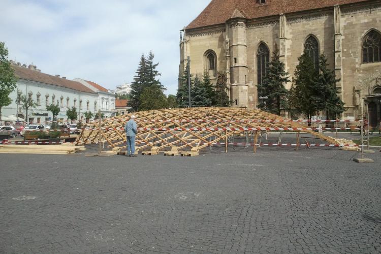 Studenții de la Facultatea de Arhitectură şi Urbanism au reușit să ridice în timp record o parte din pavilionul din Piața Unirii, care va găzdui Zilele Arhitecturii 2013. Construcția va costa 15.000 de euro