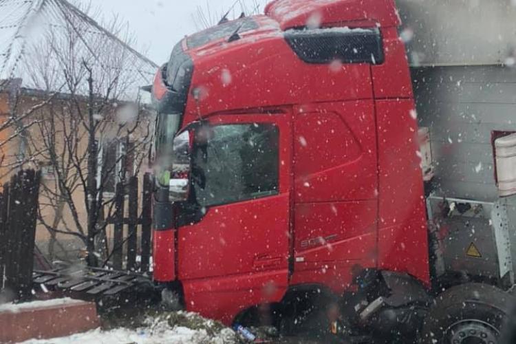 Accident rutier între Dej și Baia-Mare. Un TIR a derapat de pe șosea.