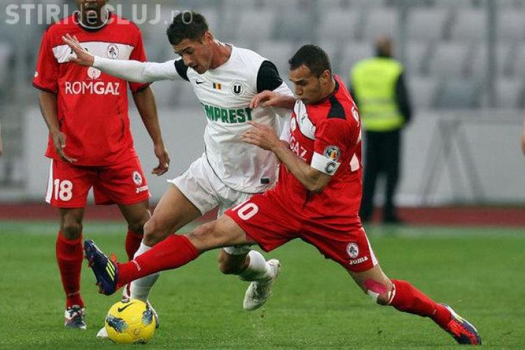 Jucătorii Universităţii Cluj i-au bătut pe cei de la echipa adversă Viitorul Constanţa cu 2-1.