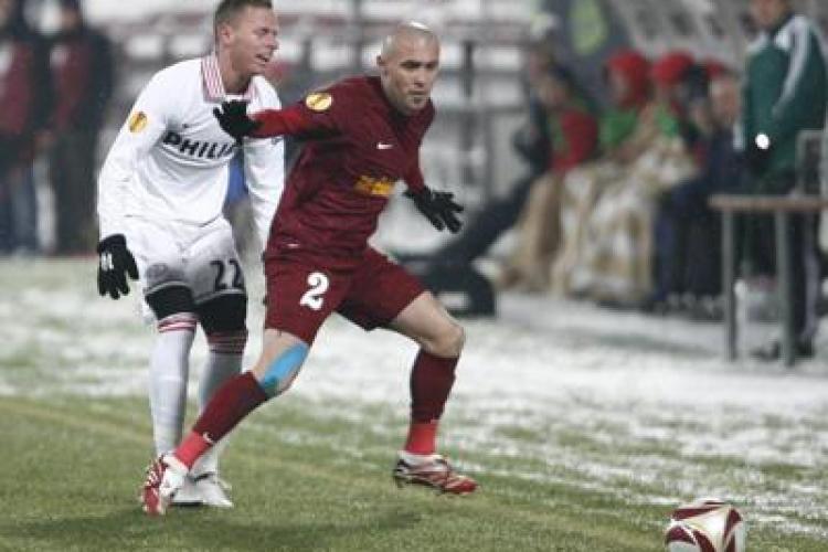 CFR este condusa la pauza cu 1 la 0 la PSV Eindhoven. In prima repriza PSV Eindhoven a deschis scorul in minutul 19, prin Lazovic, care a inscris din penalty. Repriza a fost dominata de olandezi.