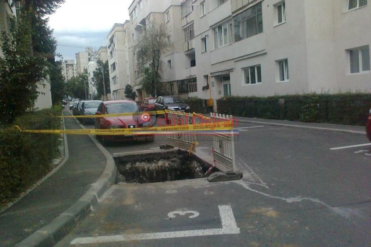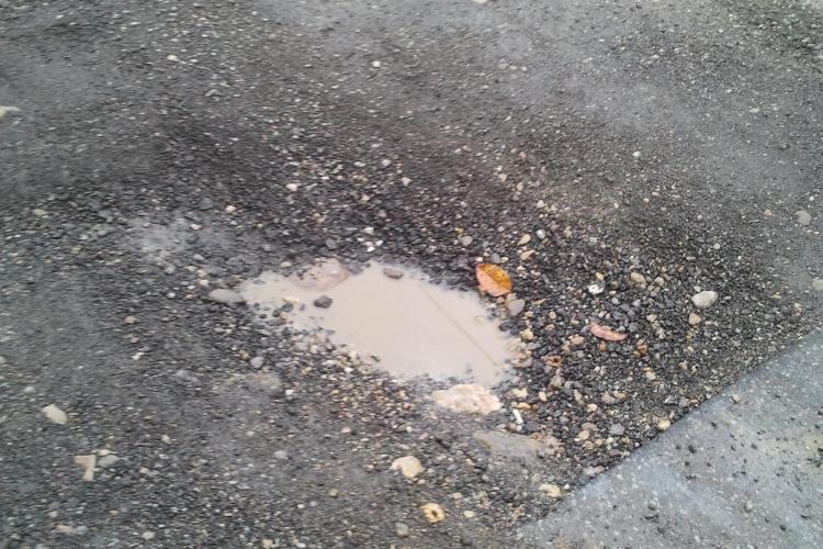 Un crater apărut pe un drum din Cluj-Napoca îi scoate din minți pe șoferi, mai ales că s-a lovit de batjocura muncitorilor care fac treabă de mântuială.