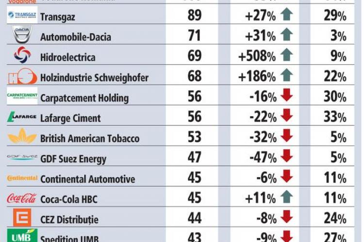 Patru companii din Romania au reusit sa obtine un profit de peste 100 de milioane de euro pe anul 2010, conform datelor publicate de Ministerul Finantelor.