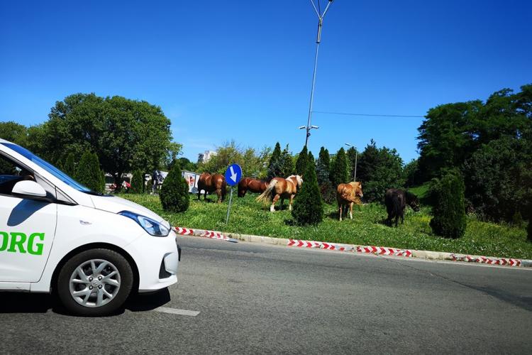 O herghelie de cai paște în sensul giratoriu de la Cora - FOTO