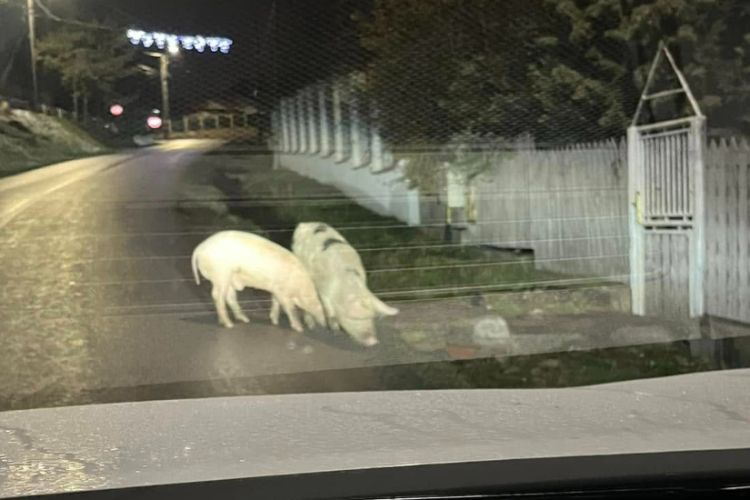 Doi porcusori au evadat în această seară dintr-o curte din Feleacu, județul Cluj, și au pornit spre „pârtia” din localitate! Localnicii se amuză pe Facebook, în speranța că proprietarul îi va recupera înainte de Crăciun
