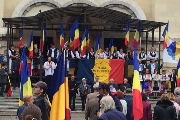 Clujenii au ieșit din case pe o vreme mohorâtă, duminică, cu ocazia unei manifestări publice comemorative sub egida "Refugierea românilor din cauza dictatului de la Viena din anul 1940".
