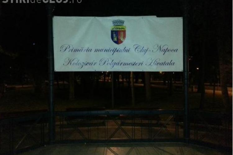 Gruparea MOST-ACUM a înlocuit un banner din Parcul Central, de la foișorul unde sunt oficiale căsătoriile, cu altul pe care numele Primăriei Cluj-Napoca era scris și în limba maghiară.