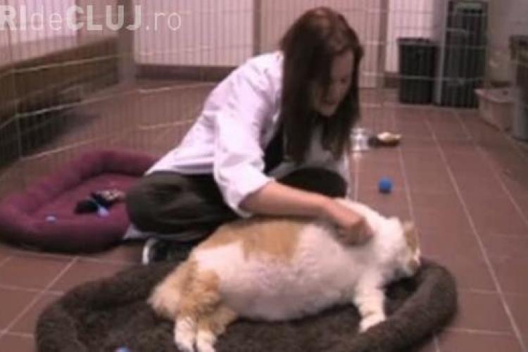 Motanul Garfield cantareste aproape 20 de kilograme si de-abia se poate tine pe picioare.