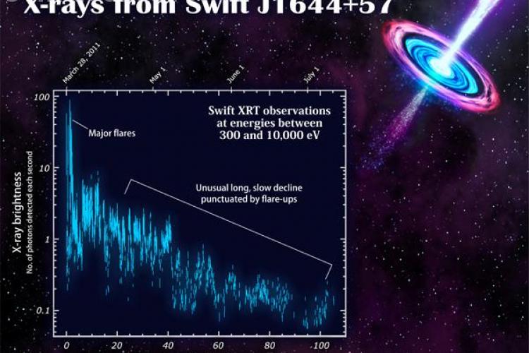 NASA a filmat cu ajutorul satelitului Swift momentul in care o gara neagra "inghite" o stea.