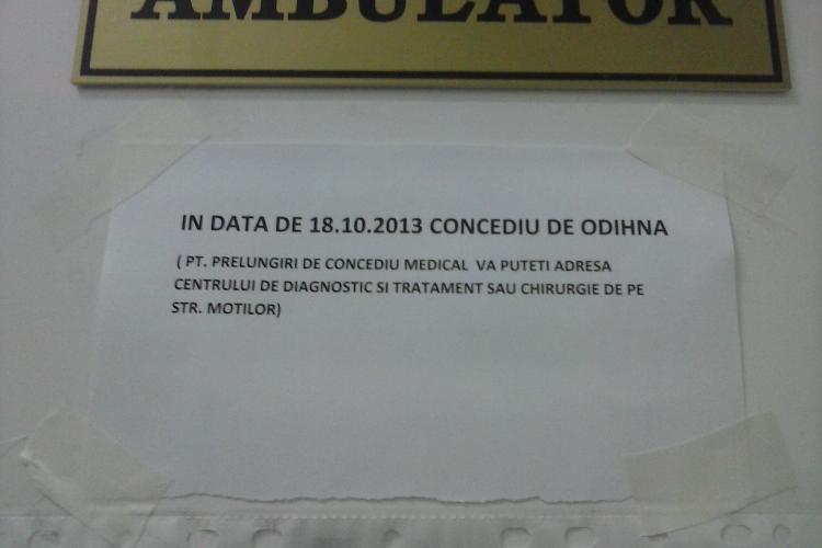 Un clujean a reclamat în 18 octombrie faptul că s-a dus la ambulatorul Spitalului de Ortopedie Cluj, având o fractură, dar nu a putut apela la medic pentru că acesta plecase în concediu.