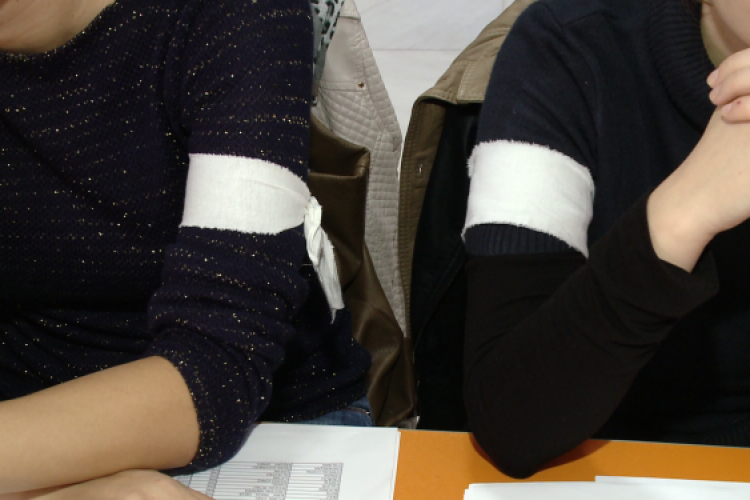 Angajații din creșele din Cluj-Napoca au declanșat, marți, 7 iunie, o grevă japoneză și poartă și poartă în timpul serviciului banderole albe pe braț în semn de protest față de situația gravă în care au auns după adoptarea unei legi care prevede trecerea