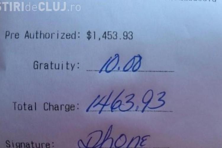 Cel mai mic bacșiș dat vreodată este de 10 dolari la o comandă de 1.453,95 de dolari.
