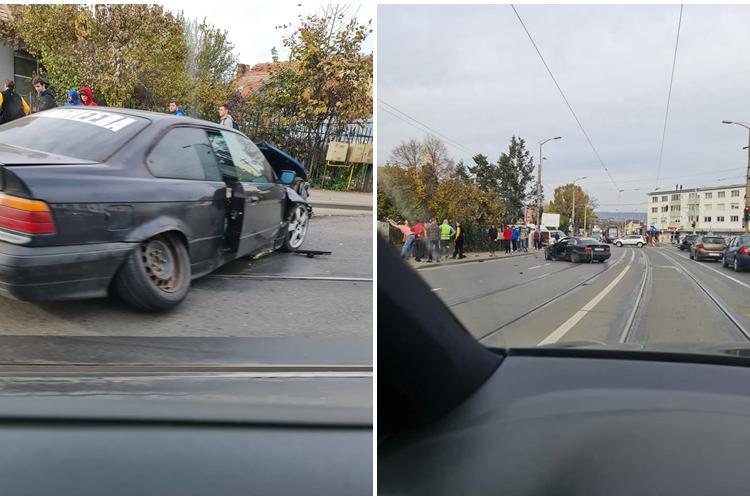 Un BMW a fost avariat serios, vineri dimineața, pe Bulevardul Muncii din Cluj-Napoca.