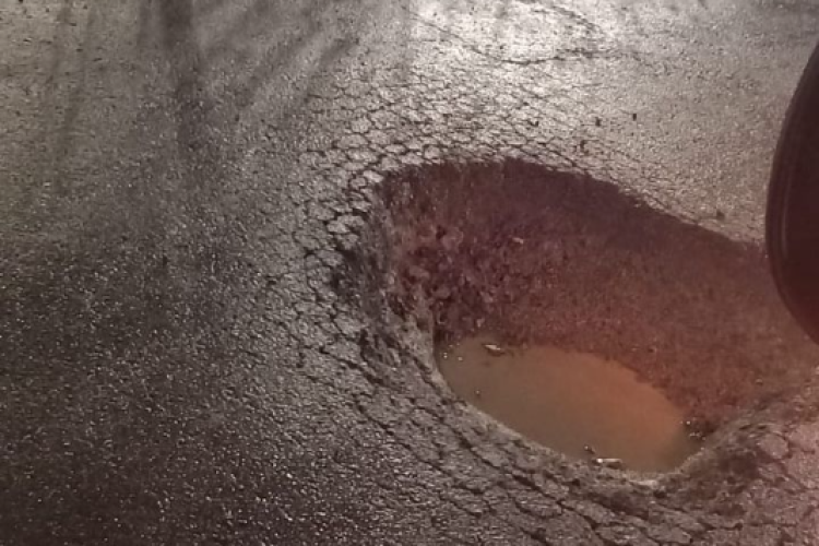 Un șofer din Cluj a dat peste o groapă uriașă în apropierea sensului giratoriu de la Vivo.