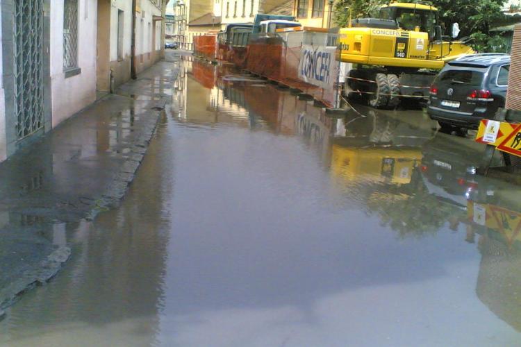 Strada Teodor Mihali a fost partial inundata in urma ploii abundente de marti dupa-amiaza. Apa a inundat mai multe curti si traficul rutier a fost ingreunat.